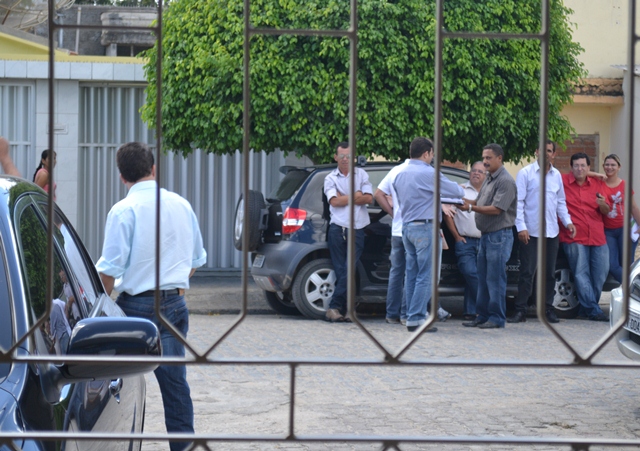 Poucos instantes antes, o prefeito Edson Vieira (PSDB) também estava no Ministério Público e, ao sair, encontrou os vereadores do lado de fora, aguardando a vez para levar os documentos ao promotor.