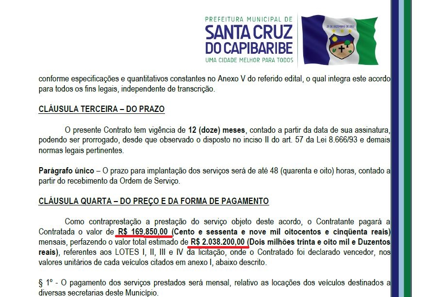 Seis meses após estourar o escândalo da “farra de locações”, a Prefeitura de Santa Cruz do Capibaribe investiu em novo contrato para locação de veículos. Dessa vez, a empresa contratada tem sede em Olinda e foi definida através de pregão.