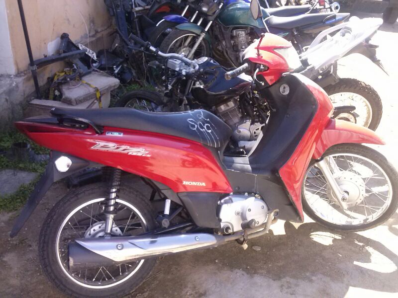 Os policiais avistaram a moto Biz, de cor vermelha e placa PGO-3432 no endereço citado e ao se aproximar do veículo foi também encontrada a chave na ignição.